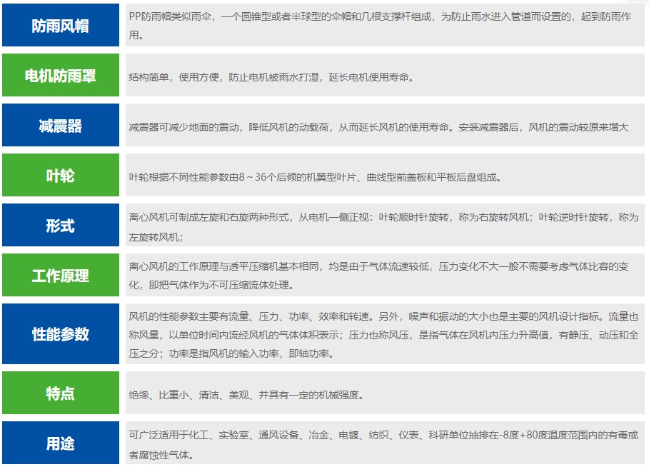 PP風(fēng)機規(guī)格產(chǎn)品特點 Product characteristics